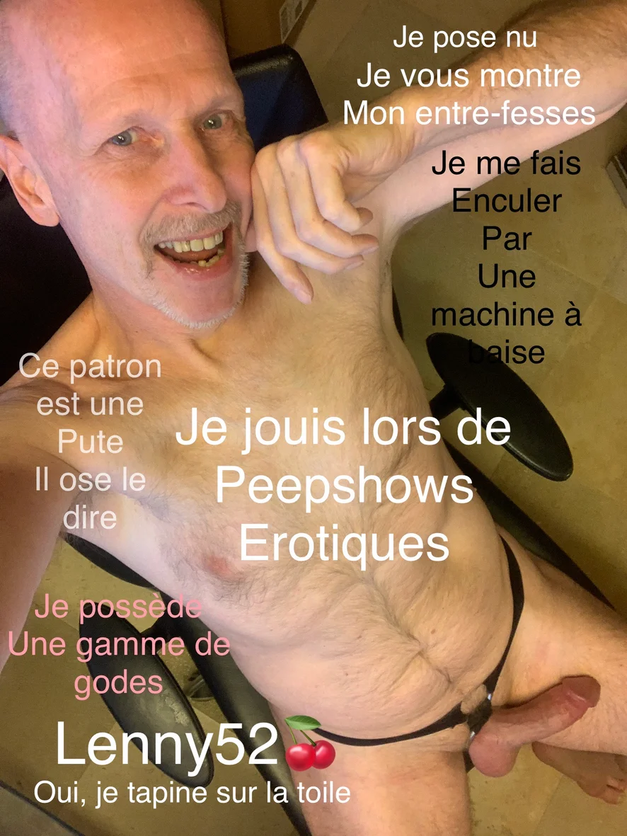 Jus wondering... How did I fall so low, from respected boss to red district slut... This penis swollen with semen tickles me all the time and the urge to ejaculate in public is too strong... So, naked, I show myself in obscene poses and attract the public by spraying my studio with my intimate pleasure... The smell of this debauchery permeates my profile as a porn star. I am a beautiful slut, I am Lenny52🍒 --- Comment ai-je pu tomber si bas, passer de patron respecté à salope du quartier rouge ? Cette verge gonflée de sperme me chatouile à tout bout de champs et le besoin d'éjaculer en public est trop grand... Ainsi donc à poil je me montre dans des poses obsènes et j'attire le public en aspergeant mon studio de ma jouissance intime... L'odeur de cette débauche empreigne mon profil de star du cul. Je suis une belle salope, je suis Lenny52🍒