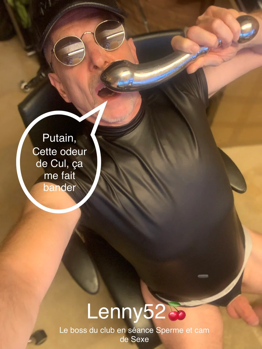 Envie de vous masturber contre le cul de Lenny52, envie de toucher son sexe et de caresser ses couilles ?… Envie de gouter de son sperme odorant le male en chaleur ? Bienvenue dans mon studio deLuxe… Je suis Lenny52 et j’adore les ambiances de bordel ; ce genre d’ambiance ou tout pue la débauche et la souillure, où l’entre-fesse laisse son auréole sur les fauteuils et le jus de couille se mélange à l’enivrante odeur de transpiration masculine ; odeur parfois rehaussée d’odeur de pieds et de sneakers parfumés ! Je me rend régulièrement dans une belle boutique de lingerie cuir et de sextoys située en centre-ville et je vous fais découvrir mon corps habillé, très classe, très salope de préférence avec des vêtementds permettant de m’empâler en direct, en Live sur les nouvelles découvertes faites le même jour dans ce sexshop… Je suis le manager d’un club libertin et un vrai pro du cul. J’adore le cuir noir, le latex brun et le PVC Bienvenue à tous !