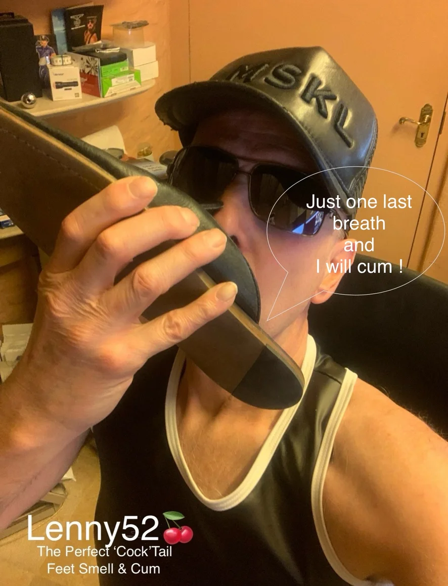 Lenny52 se présente: Qui suis-je ? Je m'exhibe nu ou habillé de sous-vêtements sexy... je me masturbe sans pudeur, à la demande... j'aime l'odeur du cuir et j'éjacule en live dans mon bureau de directeur transformé en studio de pute de sexe... je me livre à vos fantasmes lubriques enfonçant godes et dildos dans un cul lubrifié. Mon bureau pue le cul... L'odeur intense du cuir, du caoutchouc, du lubrifiant et des godes vous saisira à la gorge si jamais vous me rendez visite. Une odeur très masculine d'aisselles, d'entre-fesse, de pieds, de chaussettes et de sneakers. Comme tout étalon en rut, je me masturbe sans vergogne et mon sexe savamment lubrifié se gonfle et se raidit de désir. J'éjacule violemment, intensément, déversant mon sperme dans des convulsions extatiques aspergeant mes vêtements de foutre et étalant la sauce sur les les meubles en cuir noir. Je m'appelle Lenny52, j'aime le sperme, la débauche, le sexe et l'exhibitionnisme débridé !